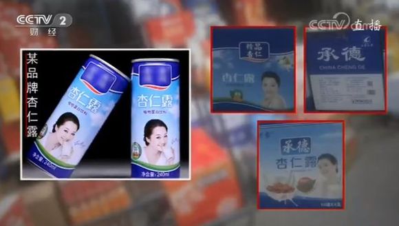 20时20分,晚会指出,山东省枣庄市多家企业大量山寨核桃露、核桃花生饮料、杏仁露等市面上流行的饮品,有的甚至连包装设计也一并模仿。一些生产厂家负责人告诉记者,这些产品一般销往3、4线城市和农村市场。