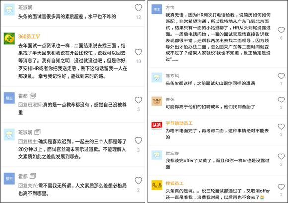 综合今日头条的面试和HR情况,可以认为,在产品线快速扩张、大量员工紧缺,HR工作很可能超出负荷很多,导致对外形象不佳。而HR本身也是员工群体的一员,可以侧面反映出今日头条整个产品矩阵的工作强度已经达到惊人的程度,前文所讲疯狂加班再一次得到印证。