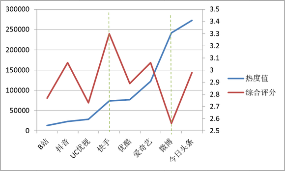 以东北喊麦著称,被部分网民冠以低俗标签的快手,评价罕见的两极分化,中立的评价很少,推荐或者不推荐的观点泾渭分明,最终得到3.30的综合评分,在所有案例中是最高的。