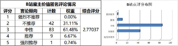 1、综合评分:每个公司名目下所有评论中,按强烈推荐(5分)、推荐(4分)、中性(3分)、不推荐(2分)、强烈不推荐(1分)5个档次对每个话题下的热门评论及点赞数进行归类和统计,通过权重计算得出评分(∑档次分数*档次权重)。