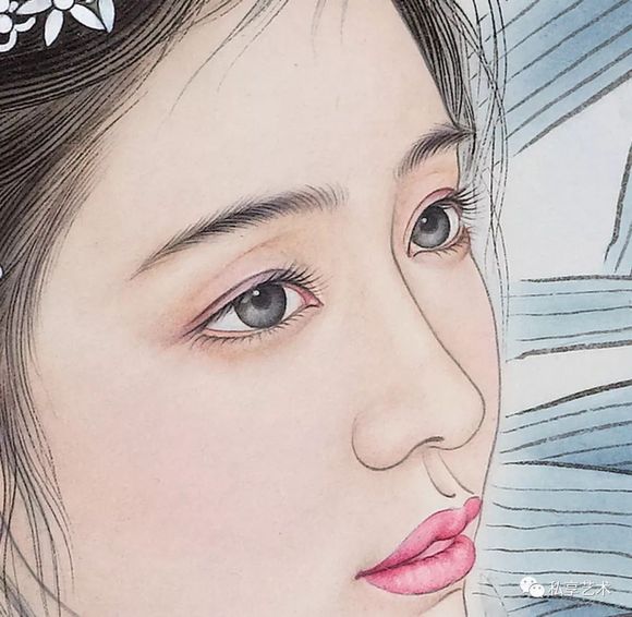 赵永夫笔下的人物体态曼妙多姿,很富女性的曲线美,尤其是《贵妃出浴》人物半掩半露,羞涩妩媚,典型的东方女性形象如诗如画般跃然纸上。真是“千呼万唤始出来,犹抱琵琶半遮面”,不胜娇羞之感不言而喻,其画面也充满了诗情画意的美感。
