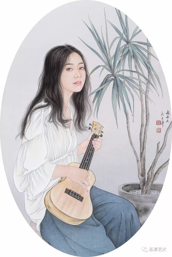 就如每个人的心中都有一个美丽的童话,只是在日常的琐碎中已被渐渐忽略,是时间的飞转流逝?还是内心的悄然变化?当我们的周围充满着喧嚣与纷扰时,只有真正体味艺术真谛的人才能保留心中的情往,无意中传递画者的心声。基于他对中国古典文学的挚爱,从而创作了一个个古代侍女形象,画面气息典雅、宁静和谐而唯美,绘画技法也更臻成熟,笔墨情趣之间自有一种女性的娴静与单纯内蕴在其中。