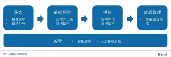 玖富人工智能中心总经理赵礼悦表示,数据是AI应用发展的关键,相较于财富管理、保险等细分行业,借贷行业能获得的用户数据更多,因此AI技术渗透最多。具体到业务流程,大致可分为四个环节。