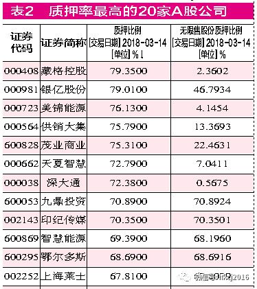 截至3月14日,A股目前有745家上市公司的整体质押率超过30%,137家公司质押率超过50%,其中有9家质押率超过70%,藏格控股、银亿股份的质押率更是逼近80%。比较来看,记者注意到实际也有700家公司的质押率低于1%,但这些公司以上市不足3个月的次新股、ST股为主,本身就不在机构的质押标的池中。
