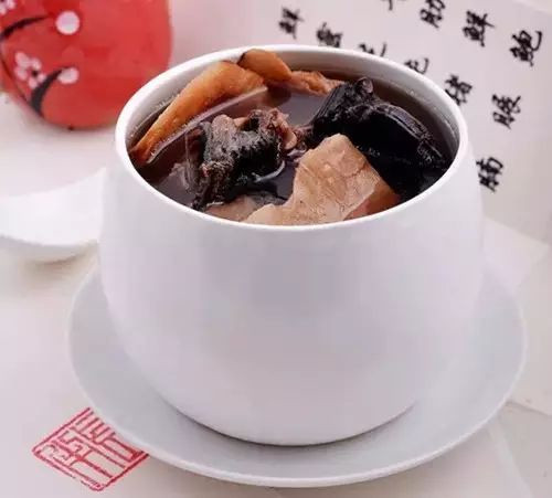 3、取煲一个,将主料和配料放置煲内加入山泉水、料酒,用武火烧开后,改用文火煲2.5—3小时后,调入盐即可。