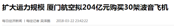 从3月23日的一篇新闻引发,南航3月22日晚间发布公告成旗下厦航已经与波音签订737MAX客机30架的购买协议,总金额204亿元。而厦航刚和波音签好协议特朗普就签了“301调查”,我国迅速回应,中美贸易战正式开打。