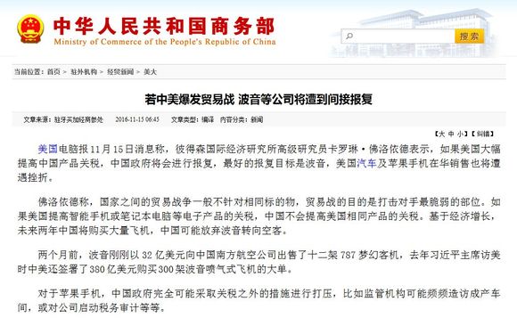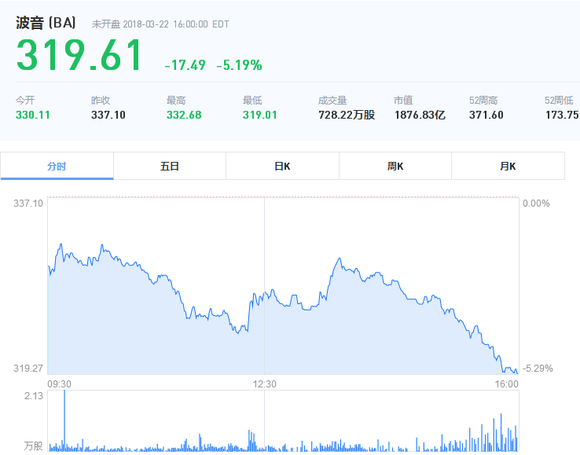 这篇内容是在商务部的网站上找到的,可见商务部的态度有多明确,波音的股价3月22日跌了5.19%,可见市场有多敏感:
