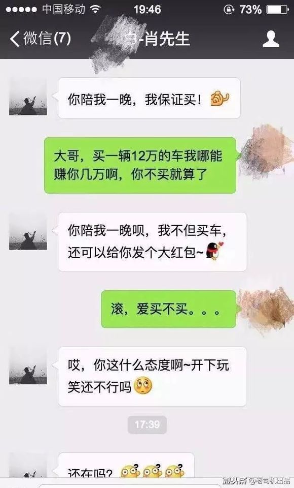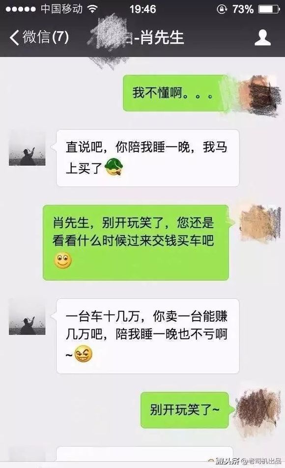 那天看到韩老师贴出来的几张图有感,这年头还真有人认为买个十来万、几十万的车,销售顾问可以从中挣几万块钱的。于是提出各种无理要求或者天马行空的砍价,搞得销售顾问哭笑不得,自己也很尴尬。