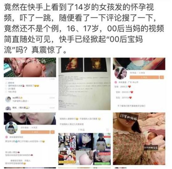 快手上有股热潮,大量低龄孕妈晒出视频,以未成年生子为噱头,争相炫耀……