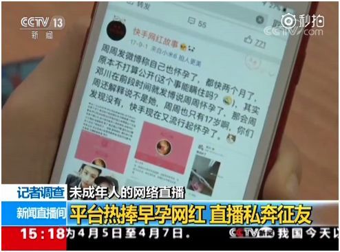近日,央视《新闻直播间》节目对短视频平台存在大量早孕网红的现象进行报道,并点名批评了快手、火山小视频等平台。