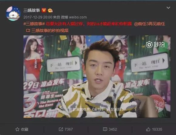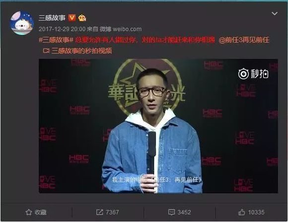 电影上映当天, “三感故事”在微博平台推出为《前任攻略3》打Call短视频也正式上线,韩庚、郑凯两位主演在片头为《前任攻略3》助阵,将电影的情感延续到戏外。通过电影主题曲拍摄于剧情相关的内容深度结合,引起用户共鸣,更让200万三感故事粉丝将电影搬进生活,三感故事微博粉丝在视频下敞开心扉,畅谈“前任”话题释放自己内心的情感,全网2亿次播放,引爆短视频互娱热潮。