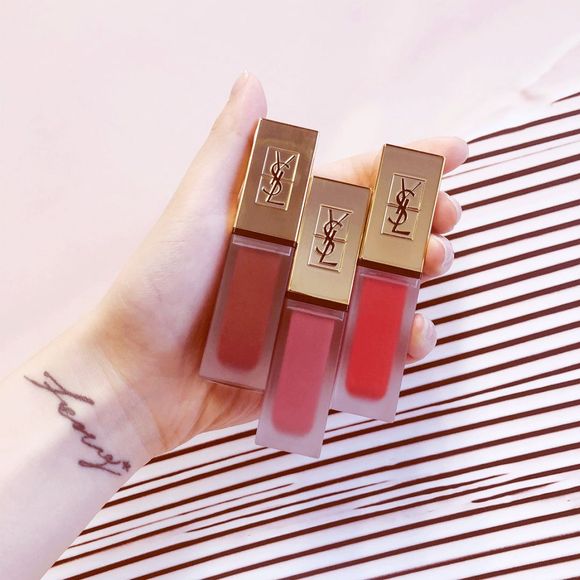 YSL新系列唇釉共18个色号,管身变成了高级的磨砂触感。刚上唇是水润的,不过马上就会转为神奇的柔焦雾面唇妆效~