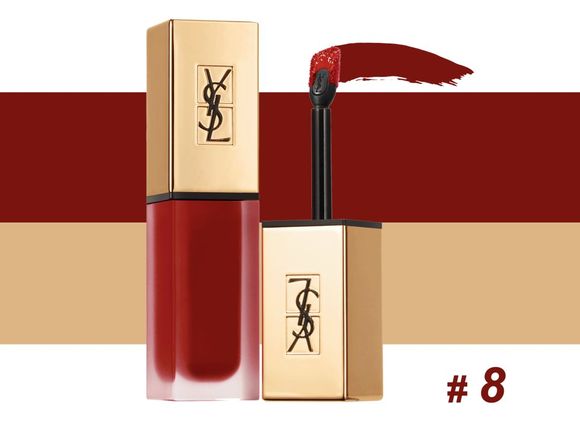 总结:8号是海报明星色号,带一点棕调的暗红色,厚擦气场十足。也可以根据眼妆的浓淡薄擦,非常显牙白和衬肤色~