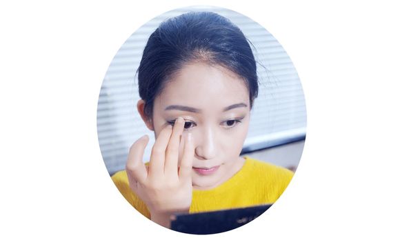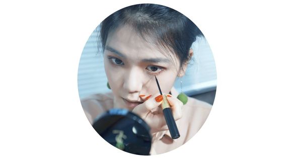 她的眼妆重点是贴上特别的亮片,所以眼影用大地色加深轮廓就好。