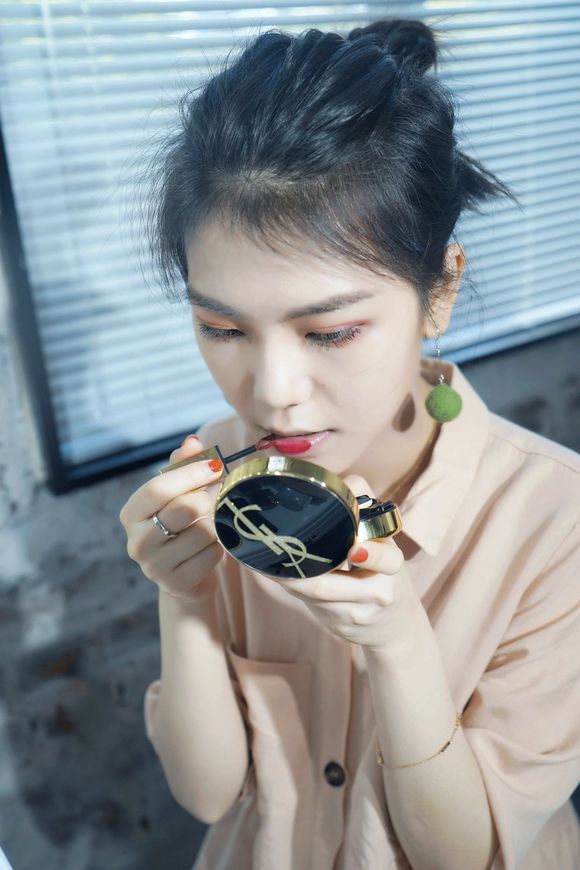作为资深YSL专业户,她觉得新唇釉用起来很像染唇液,轻薄好上色,就是干得有点快,所以要快速涂匀。最后还感叹了下:“还是那熟悉的味道~”