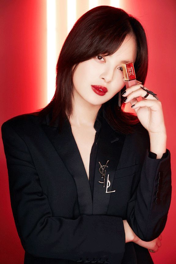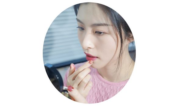其实是因为她的唇妆要重点模糊边缘,像她一样嘴唇比较饱满的客官可以尝试这样画,不会因为涂深色变成香肠嘴,还雾面丝绒感十足。