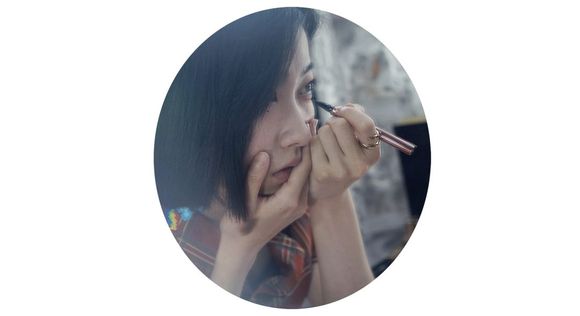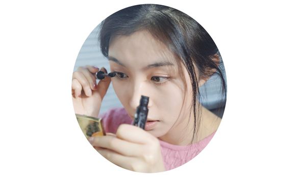 我观察了一下觉得她功力不浅,没想到她马上开始碎碎念自己很害怕画眼线,一惊一乍的才把眼线画对称了……