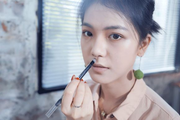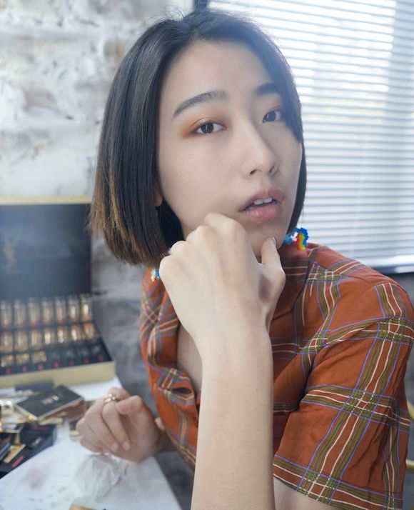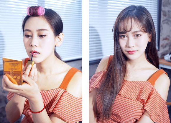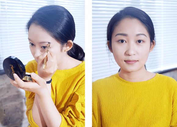 我们公司的御用野模,人送外号“YSL女孩”,平常就是大地色眼妆+斩男色唇膏。这次主题她打算挑战一下红茶妆,装一下温婉少女。