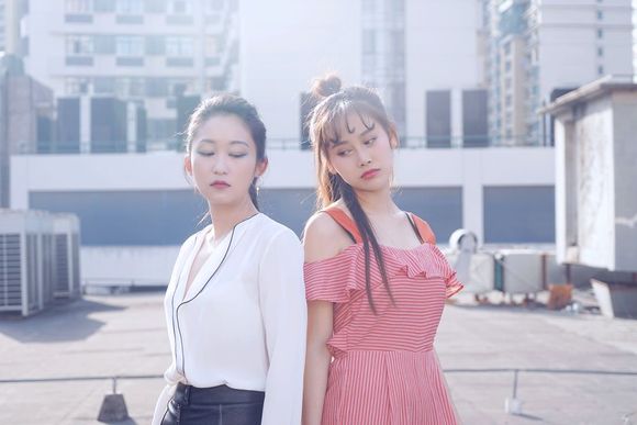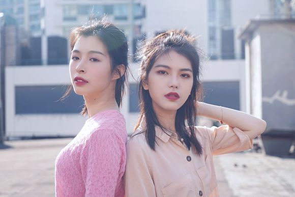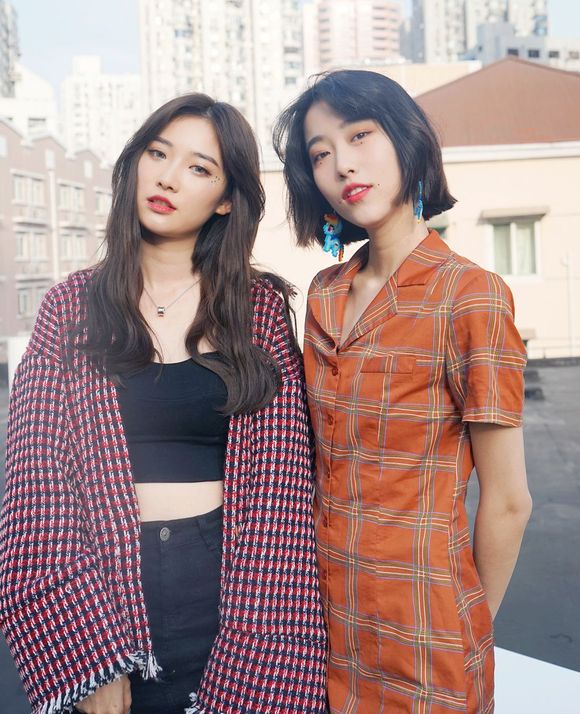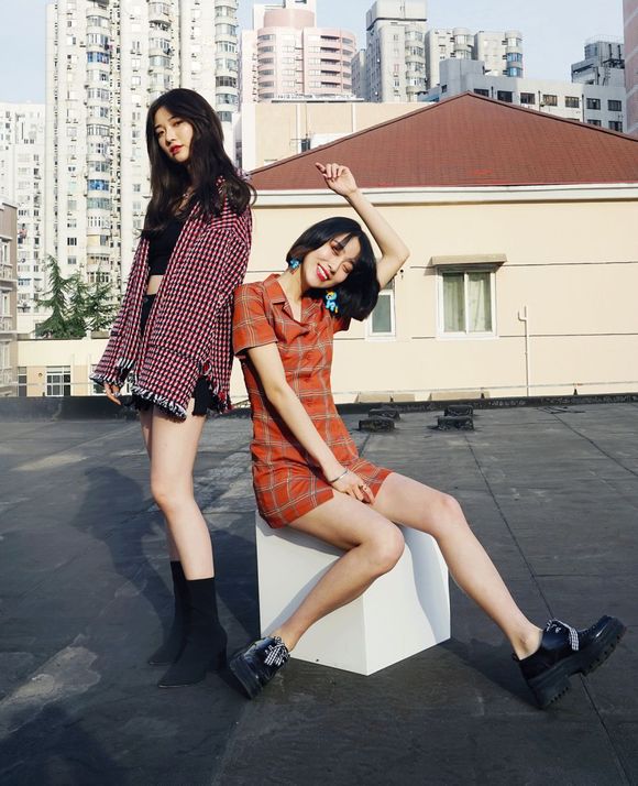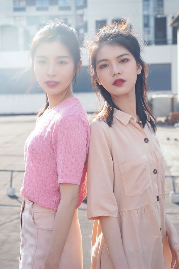 这对闺蜜的妆容打扮风格完全相反,一个欧美高冷,一个日系甜美,在一起外景的时候大家都各演各的戏,感觉暗中在较劲。