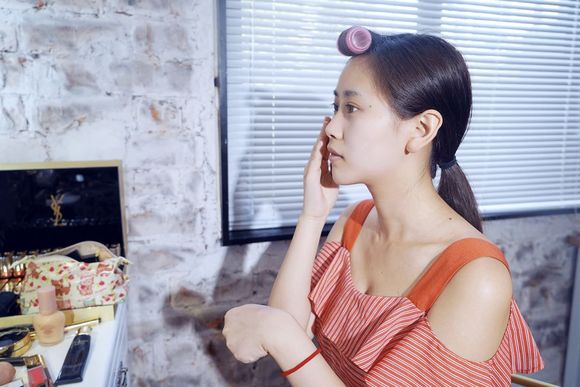 Zixin来公司的时候,大家都很惊讶她居然是素颜的。坐在几百瓦的白炽灯下,她的皮肤大概在发光……
