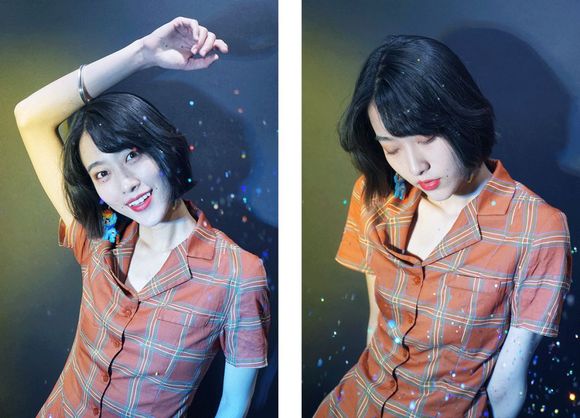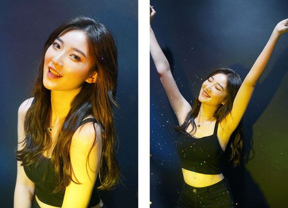 最后我们觉得这个妆容也很适合夜店蹦迪,于是又加了组棚拍,模拟夜店效果。