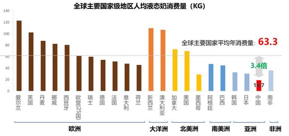 中国人均液态奶消费远低于全球主要国家平均水平,液态奶消费增长空间巨大。