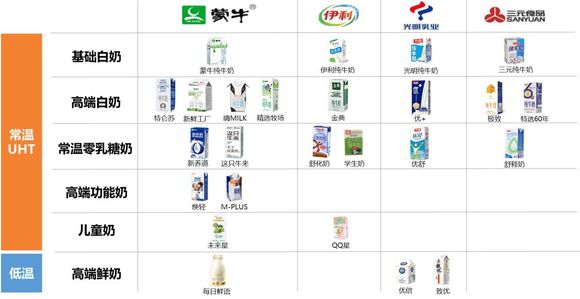 四大液态奶品牌着力布局UHT白奶,蒙牛产品布局最为丰富与全面。