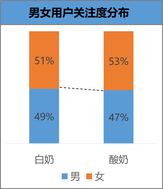 同步化:对白奶与酸奶关注的360用户,在性别、年龄及学历上基本趋同。