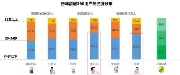 360用户除了搜酸奶价格与官网,在搜纯甄与安慕希时还关注代言人与广告。