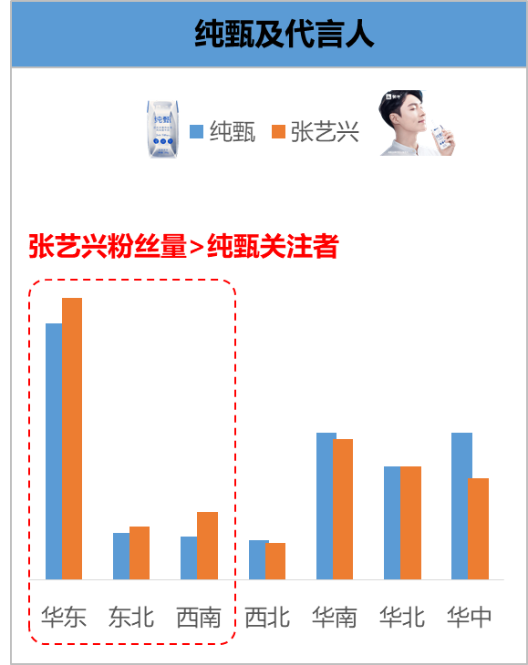 华东地区是特仑苏与金典两大品牌最重要的消费市场,借力靳东特伦苏可再开拓东北,金典则可倚靠王菲深挖华东地区潜力。