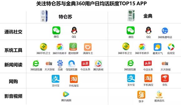 除了通讯社交,关注特仑苏360用户热衷新闻阅读,金典用户则钟爱系统工具。