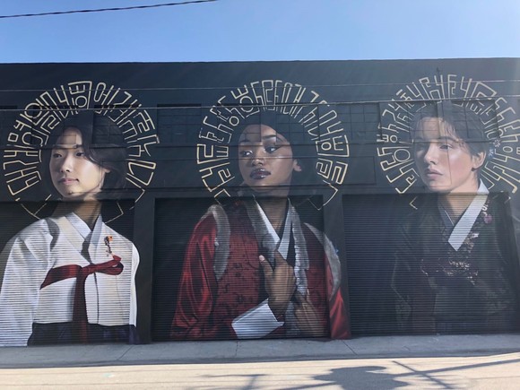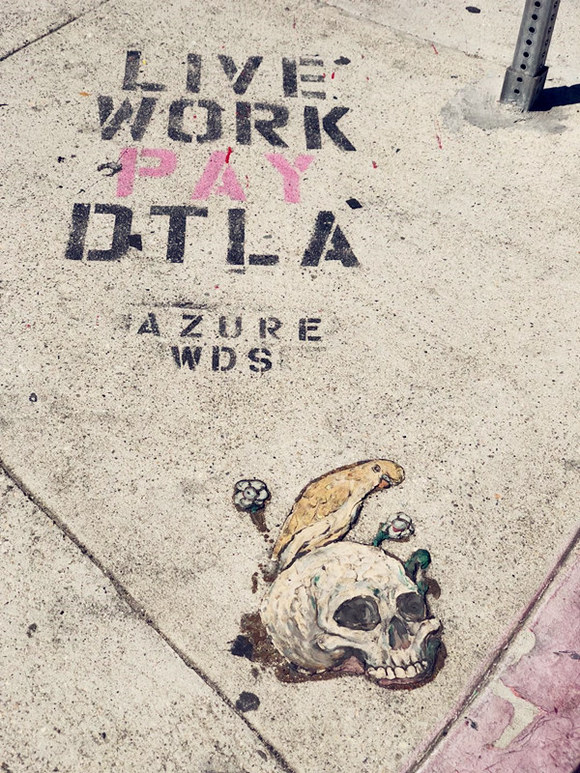 和纽约街头艺术家喜欢在墙上喷涂花里胡哨的字样不同,洛杉矶的街头艺术作品可以出现在围墙、建筑物、垃圾桶、人行道,甚至是电线杆上,而且从人物到风景到的题材也非常广。由于在早先几十年里,洛杉矶东部和西部街头艺术家分别埋头于自己的创作,他们都很好地保留下来了自己的独立创作风格,而如今市中心的艺术区不仅让他们有机会齐聚创作,而且开放的城市氛围还吸引来了亚裔、非裔、拉美裔艺术家。这些背景多样的艺术家在一起,寻找这个区域的不同角落创作着艺术品。