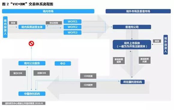 目前美国中概股2000亿以上市值的企业仅有8家,且都通过发行ADR的形式在美上市。由于我国政府对TMT领域存在外资准入限制,“BATJ”为代表的此领域企业不得不采用可变利益实体(Variable Interest Entities,VIE)+ ADR的形式前往美国上市。如果选择“VIE+ADR”的境外上市企业最终决定通过CDR模式回国上市,那么“VIE+ADR+CDR”的股权交易模式将创造全球资本市场上独有的具有“中国特色”的交易体系,实现了资本和股权由境内到境外再到境内的流通,中国公众投资者的资金将通过庞大的金融体系运作才能实际享有境内运营实体经营所产生的收益。但不可否认的是复杂的金融体系可能会对投资者产生较高的交易成本,在冗长的交易链条中如何提高交易效率和规避非系统性风险也成为了市场需要关注的问题之一。