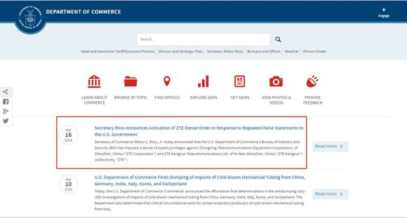 4月16日美国商务部网站亮出大招,对中兴通讯(HK:00763)禁购零部件7年。