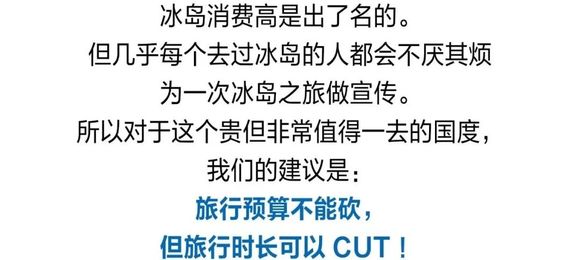 但是!!!且不说悠长假期的罕见,光是日均旅行消费过万的冰岛物价也是一大难题。更何况,冰岛的景色美是美到极致,但几天下来,都是同等程度的震撼,你若没有一颗文艺旅行者的心,恐怕也很快就审美疲劳了。所以,确认过行程,我们认为3天是刚刚好的时间。