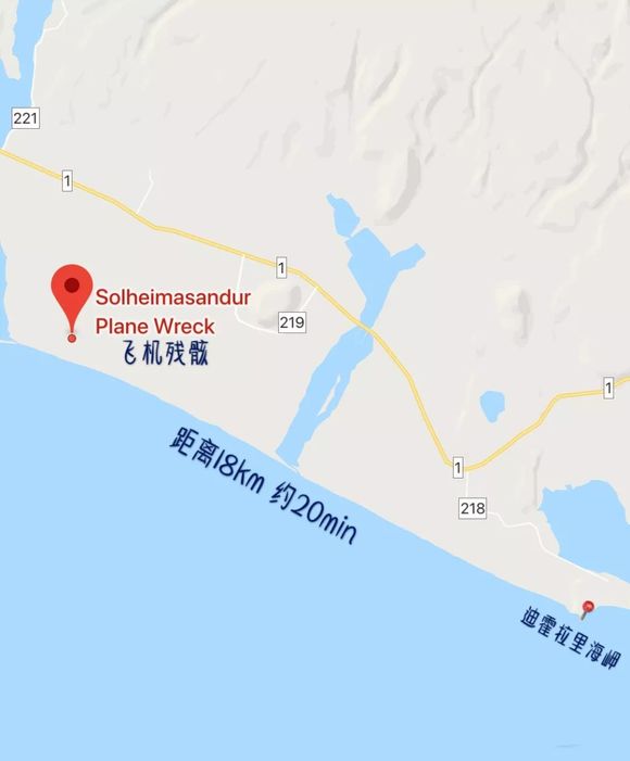 这架飞机于1973年坠毁于的黑沙滩中,机上的人员全部生还,但留下了机体残骸在此融入了黑沙滩直到现在。但需要注意的是,飞机残骸所在的黑沙滩并不是维克镇的那个黑沙滩,没有路名也无法行车,在谷歌地图输入“Solheimasandur Plane Wreck”可以显示具体位置。