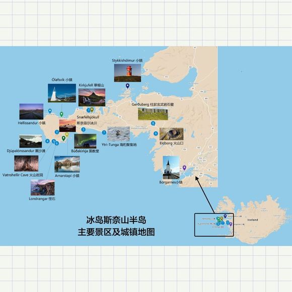 从ION酒店出发到斯奈山半岛的路虽然完全脱离了人气1号公路,但也完全不难走。只有前半小时穿越辛格维利尔国家公园内部的路非常窄,但因为车辆极少,所以稍加注意完全没问题。曾经默默无名的斯奈山半岛(Sn fellsnes)如今已然成为了冰岛的明星景区。这座面积不大的半岛距离雷克雅未克不远,一日之内即可往返。半岛上集中了瀑布、火山、冰川、熔岩原等独具冰岛特色的景观,因此有着“冰岛缩影”的美誉。不过这其中当属草帽山最有代表性。