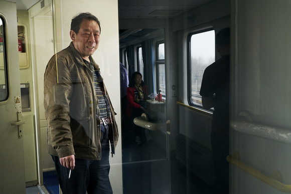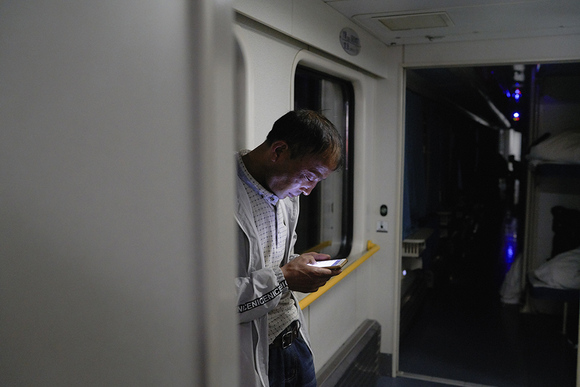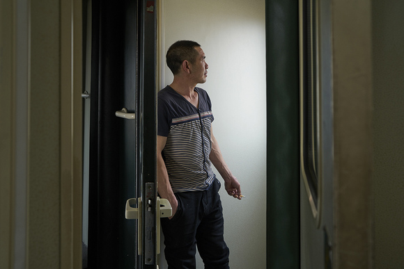 在周静抽着烟的时候,连接处的另一头偶尔传来微弱的对话声,时而被巨大的车轮声所掩盖,那是许伟宁与妻子面对面抽烟时偶尔闲聊的声音。一起踏上这段从东北通化到宁夏银川的旅程时,他们刚刚结束一星期左右的探亲之旅。两人话不多,只是默默抽着烟,不过并不会被误以为只是同行的朋友或是两个刚刚相熟的陌生人——每一口烟的间隙里,两人的对视中,总有一种无法言说的默契。