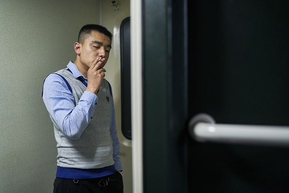 王海和很多来连接处抽烟的人一样,从没在这里交过朋友,也许因为他稍有内向,也许因为在这里与陌生人的相处总是不会超过一根烟的时间。做石料厂生意需要经常出差,王海会专门挑选慢车,因为“能吸烟,自由,空间大一些。”四十年烟龄的王海,十几岁就开始吸烟——六十年代的童年“比较穷”,又没什么可以玩的,一群少年就在一起起哄卷着烟叶学抽烟,或是从家里偷着烟抽。那时候供他们选择的烟品种类,从五分钱一盒的经济烟,到北京产的八达岭,和产自内蒙,地域性较强的千里山、大青山。随着烟瘾的形成,这帮孩子也渐渐长大,到了可以自己买烟抽的年龄。那些一起抽烟的朋友就是王海的发小,虽在同个城市,现在都有了各自的生活,只有逢年过节才联系。他们之中很少有人戒烟。“也想那些发小。人老了,回忆起小时候,挺有意思。”