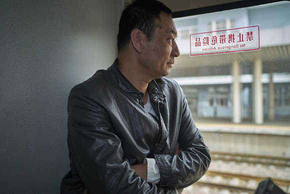 相较于西北人,来自重庆的谭伟锋有着并不高大却很精干的身躯,在某些光线下显得煞白的胳膊上,依稀可见健壮的肌肉与微微暴起的青色血管。这双臂膀在他离开家在外漂泊的二十多年里做过许多事情:从十八岁在万州考到三级厨师证开始做厨师,到去东北开自己的川菜小吃馆,再到五、六年前改行跑全国各地的工程做木工——老家的朋友在哪里当包工头,几个朋友就会结伴前往。这样一年下来,也能挣到几万块钱贴补家用。这一次由辽宁去青岛的旅程很匆忙——去青岛看了一个工程发现不怎么赚钱,才准备辗转到青海的另一个工程去——他们预备坐这列车到西宁,再坐三十多块钱的汽车到达目的地,位于青藏高原边缘的循化。