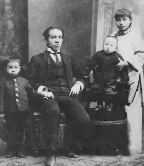 1905年梁思成与父亲梁启超、姐梁思顺、弟梁思永合影