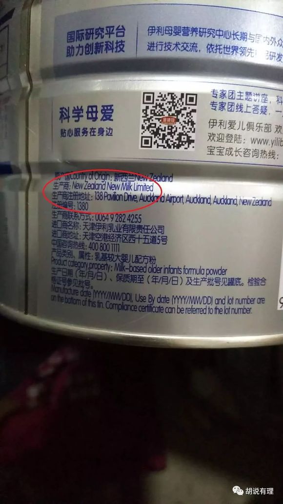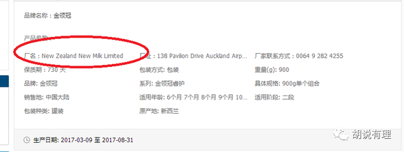 胡说有理注意到,伊利2017年生产的金领冠睿护生产厂家为New Zealand New Milk Limited(新西兰新牛奶有限责任公司)。