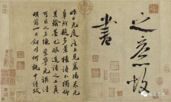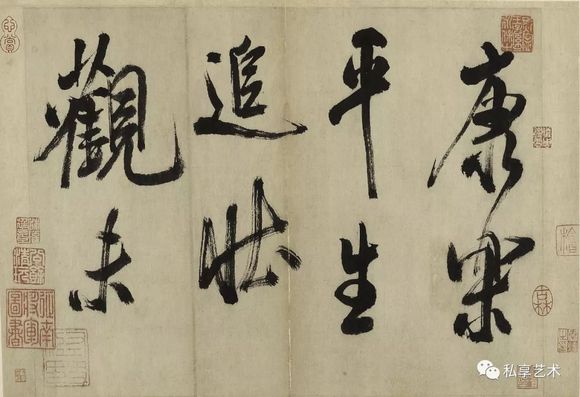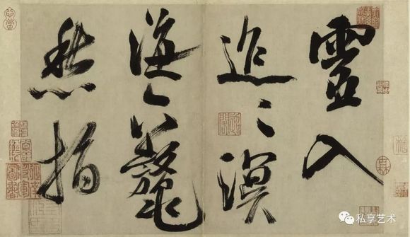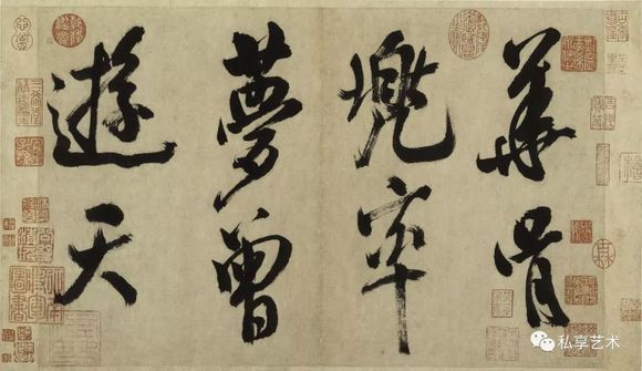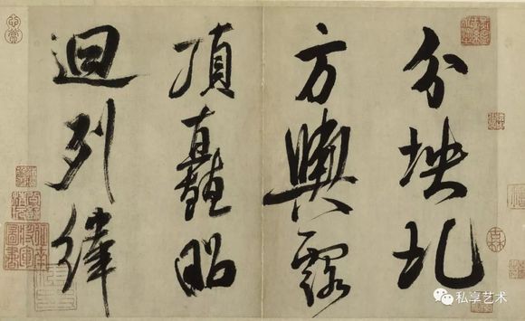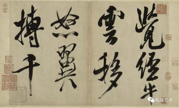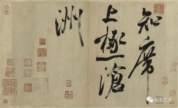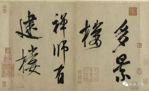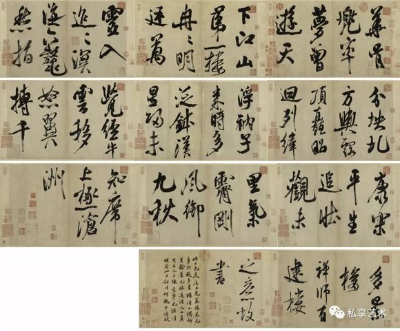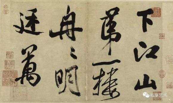 《多景楼诗帖》原为长卷,在宋时已被装裱成册,明清时期为不少收藏家递藏,是流传有绪的书法剧迹。