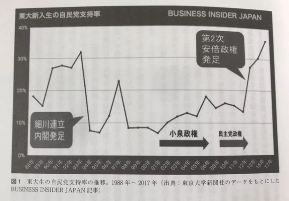 按:若者(わかもの)一词,在日语中是年轻人、年轻一代的意思。近年来,日本年轻人政治保守化的趋向开始引起日本社会的广泛关注。根据东京大学新闻社的连续统计调查,东京大学学生的自民党支持率在近几年内急剧增加,甚至创下了30年以来的最高纪录,而这一现象在整个日本年轻一代都屡见不鲜。年轻人对既有体制的高度肯定,引发了日本社会对于年轻人是否正在走向保守的担忧。