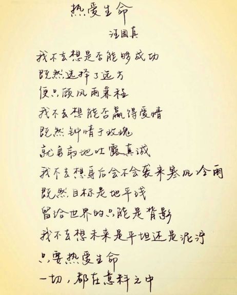 就是这种情况下,他写了一首诗,用来激励鼓舞自己,这首诗也就是后来红遍大江南北的《热爱生命》。