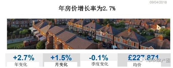 4月9日,Halifax银行发布了今年3月的英国房价指数报告认为,对比去年同期,今年3月英国平均房价增长了 2.7%,对比上月上涨1.5%,而整体的平均房价,达了 £227,871 的历史新高。