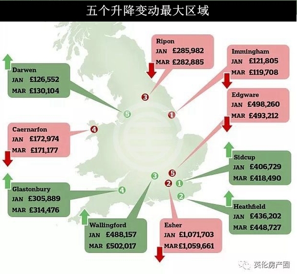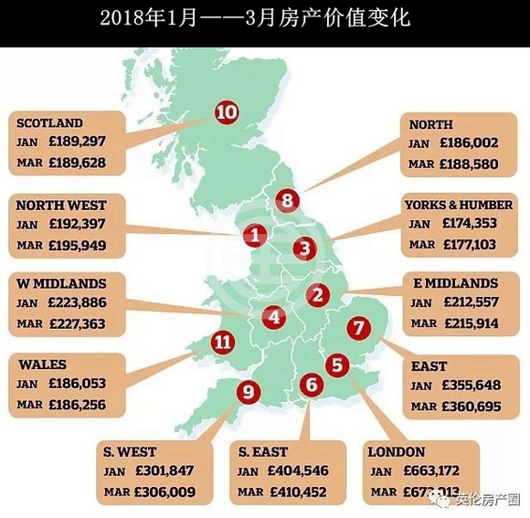 地区性涨幅以 “Northern Powerhouse” 受惠最大的西北英格兰夺魁,东米德兰兹第二,伦敦第五。
