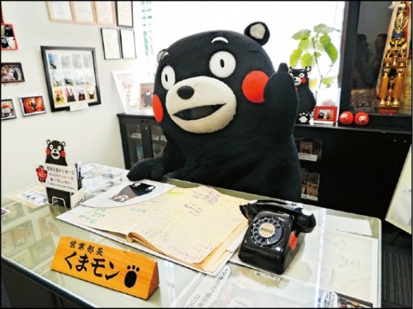 呃,不管熊本熊今后将走过怎样一条命运之路,都与我这个神奈川县人几乎毫无关系,那是熊本县的问题。这种问题本可以放在一边不管不问,但我这个人天生是不幸的性格,一旦介意起什么来,就会挂在心头难以忘怀,于是决定跑到熊本县一个名字非常之长,叫作“工商观光劳动部·观光经济交流局·熊本品牌推进科”的部门去,听听熊本熊推广负责人是怎么说的——很遗憾没听到熊本熊是怎么说的。熊本熊兄的头衔是“熊本县营业部长”,是一位堂堂正正的公务员,现在忙得不可开交。
