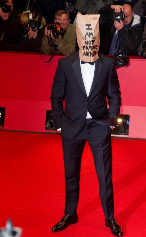 看这里。2014年的柏林电影节,惊世骇俗的《女性瘾者》首映红毯上,导演拉斯·冯·提尔因为言论不当被禁止参加了,主演希亚·拉博夫就想了这样一个办法。