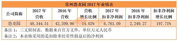 报告期内,恐龙园实现营业收入48,344.51万元,同比增加14.02%;扣除非经常性损益后的净利润6,761.09万元,比上年同期增加197.71%。